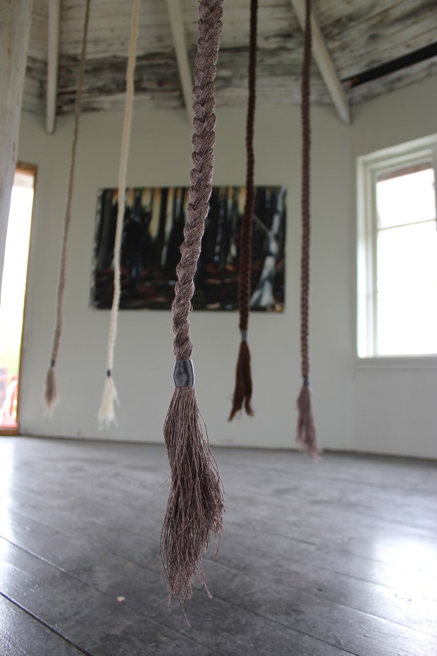 Brushwood is an almost impenetrable kind of vegetation, it’s the kind of nature that resists the human touch, and so allows other life forms a haven. As a painter the word ‘brushwood’ offers a play with words; brush-wood. The inner images are painted into woods of brush strokes, let loose in a land on the linen surface. The painting itself becomes a haven for these thoughts and ideas, a brushwood on linen where they are safe to live and communicate with others.