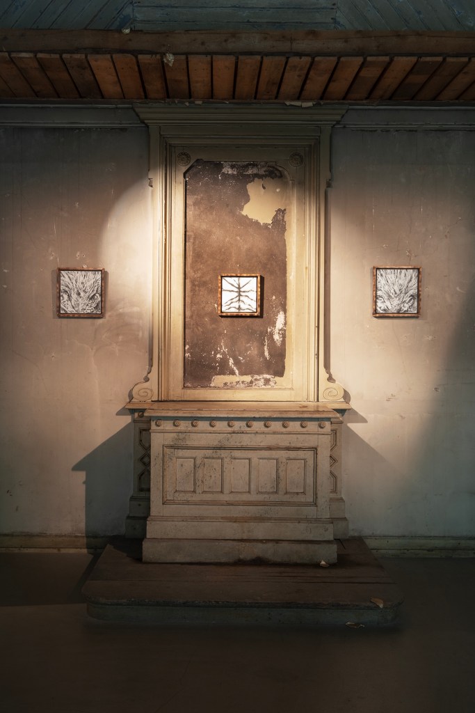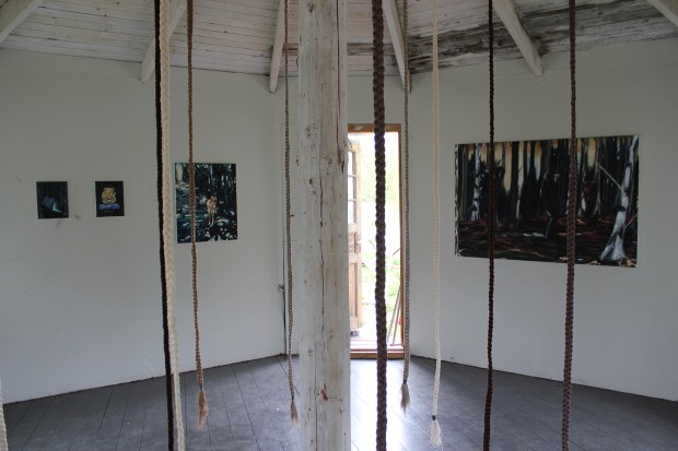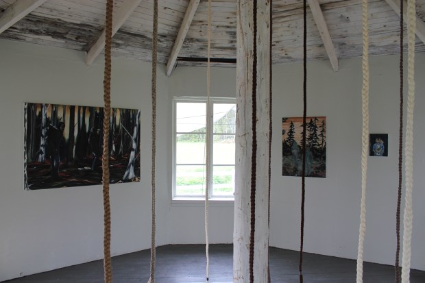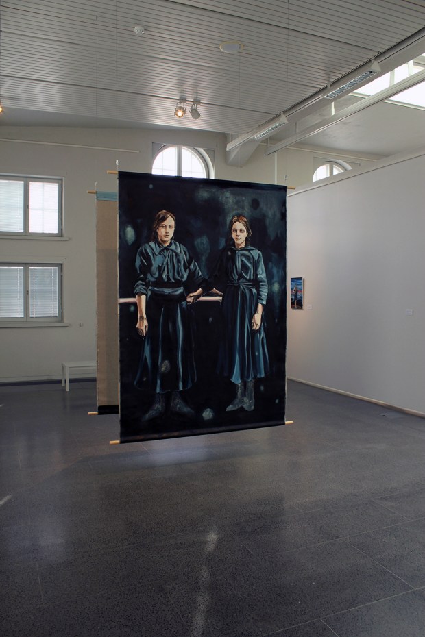 Lund Pangrazio ended up using the Pyhälahti photos as the source for her inspiration whilst working in Lapua. It was a pleasure to watch the artist who came from outside of Lapua and Finland approach and interpret the images, and we ended up having lenghty conversations about the contents of the works. The magnificent pieces of art created during her stay in Lapua inspired us to further collaboration and so came about the idea of adding a Lund Pangrazio solo exhibition at Lapua Art Museum to the collaboration between the artist residency and the culturohistorical museums of Lapua.