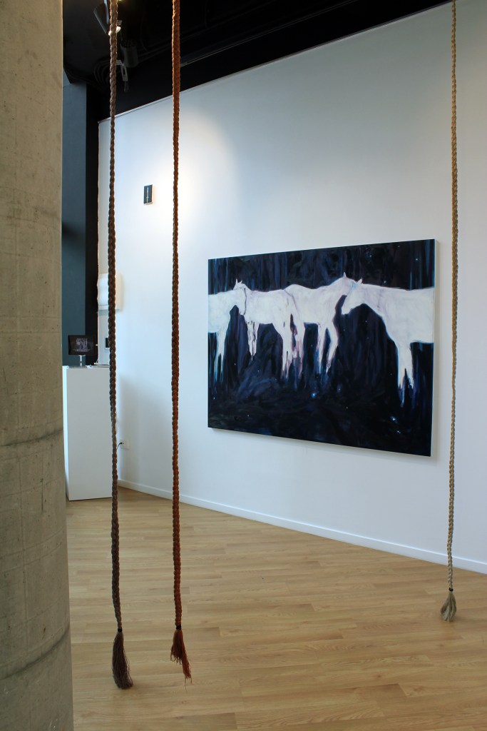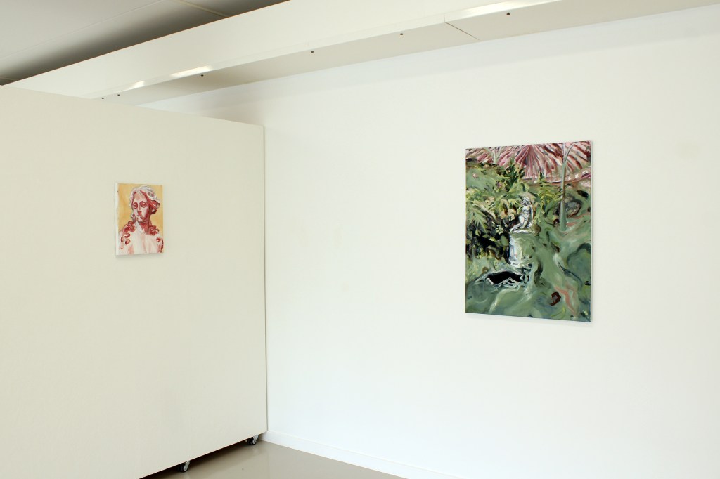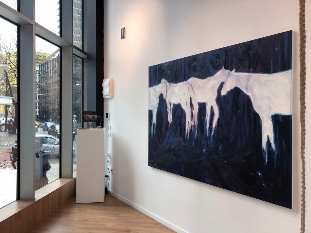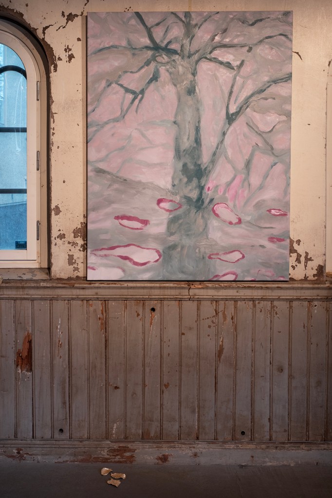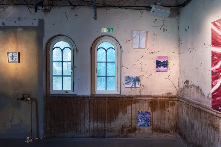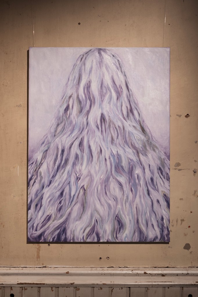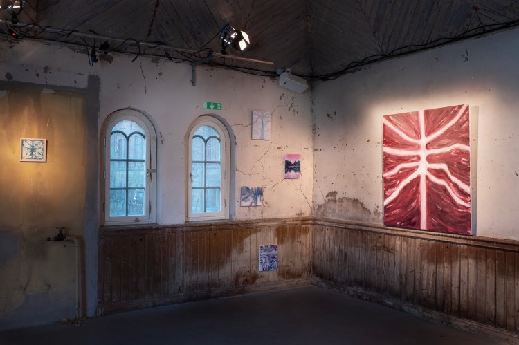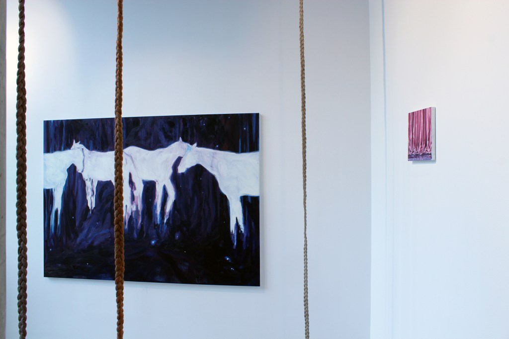 In this site-specific installation the huge mountains are brought into the small gallery space through a body of large-scale paintings which take up most of the gallery walls. It is a saturated sunset of our time, and it is an invitation to immerse yourself in colour, shapes, dreams, and the slow but constant order of time. It is a dreamscape on the verge of awakening.